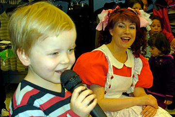 » ETUSIVU » MADDALEENA » KASVOMAALARI » JUONTAJA » LAULAJA » VALOKUVAT » YHTEYSTIEDOT PÄIVÄKODIT | SYNTTÄRIT | LASTEN KARAOKE | NUKKE&PEPPI Lasten karaoke on hauska ohjelmanumero lapsille ja lapsenmielisille. Maddaleena toimii karaoken vetäjänä laulaen välillä itsekin. Karaokelistalla on tuttuja iloisia lastenlauluja, mm. Minä soitan harmonikkaa, Jänis istui maassa ja Postimies Pate sekä iskelmiä ja päivän hittejä vanhemmille lapsille. Lasten karaoke sopii tavarataloihin, kauppakeskuksiin, messuille, yritysten lastenjuhliin…